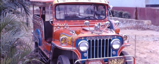 In Spring, 1974 I took a few days leave at Clark AFB in the Philippines, en route to Bangkok. Part of the rate for my hotel room in Angeles City included a Jeepney and a driver. His name was Benny, mid-20s with a fancy Jeepney, and he took me all over the place, such as the first Japanese kamikaze airfield nearby. I told Benny I wanted to go to the town where they made rattan furniture, and he asked if it would be OK to slightly detour “a few miles” and go to his village so he could pray in his home church during Lent (a requirement for Filipino Catholics, so Benny said).
